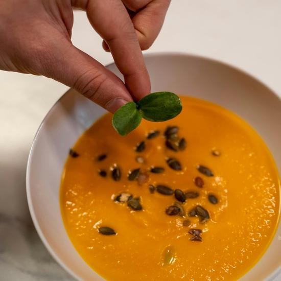 Huisgemaakte Pompoensoep 🎃🍲 Onze huisgemaakte pompoensoep is een heerlijke, romige soep met een zachte en lichtzoete smaak. Ambachtelijk bereid met verse ingrediënten en perfect als voedzame lunch, lichte maaltijd of verwarmend voorgerecht. De soep is eenvoudig op te warmen in een pan en dankzij de zorgvuldige bereiding 4 tot 5 weken houdbaar in de koelkast, zonder verlies van smaak en kwaliteit. Waarom kiezen voor onze pompoensoep? Ambachtelijk huisgemaakt Romig en vol van smaak Bereid met verse pompoen Gemakkelijk op te warmen in de pan 4–5 weken gekoeld houdbaar Ideaal als snelle, voedzame maaltijd Geniet thuis in een handomdraai van een kom heerlijke, huisgemaakte pompoensoep. 🍲