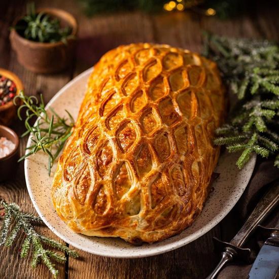 Voor een perfecte Beef Wellington adviseren wij het gebruik van een kerntemperatuurmeter. Verwarm de oven voor op 200 °C. Plaats de meter in het midden van de Wellington en stel deze (indien mogelijk) in op 50 °C. Na ongeveer 35 minuten is uw feestelijke hoofdgerecht klaar. Haal de Wellington uit de oven en laat deze 5 minuten rusten onder aluminiumfolie, zodat alle smaken zich optimaal kunnen ontwikkelen. Daarna is hij klaar om in stijl geserveerd te worden op uw feestelijke tafel!