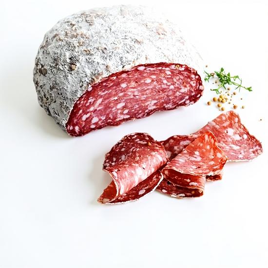 Pain d’Ardennes Pain d’Ardennes is een luchtgedroogde salami met een grove korrel, rijk van smaak door de zorgvuldig geselecteerde kruiden die aan het vlees worden toegevoegd. Het resultaat is een volle, hartige en karakteristieke worst die heerlijk is als borrelhap of op brood. Productinformatie: - Luchtgedroogde salami met grove korrel - Speciaal gekruid voor volle, hartige smaak - Ambachtelijk bereid voor optimale kwaliteit - Heerlijk op brood, toast of bij de borrel Een smaakvolle en karaktervolle keuze voor liefhebbers van authentieke salami! 🥩✨
