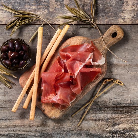 Deze originele Italiaanse ham is minimaal 24 maanden gerijpt en heeft een verfijnde zachte smaak